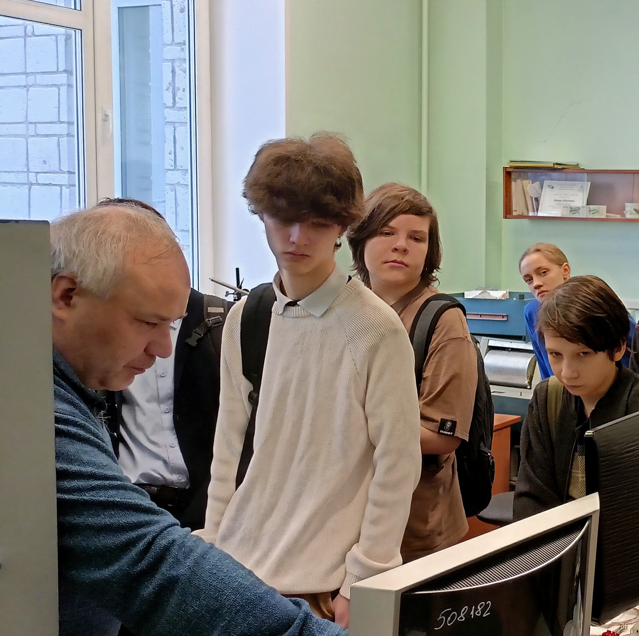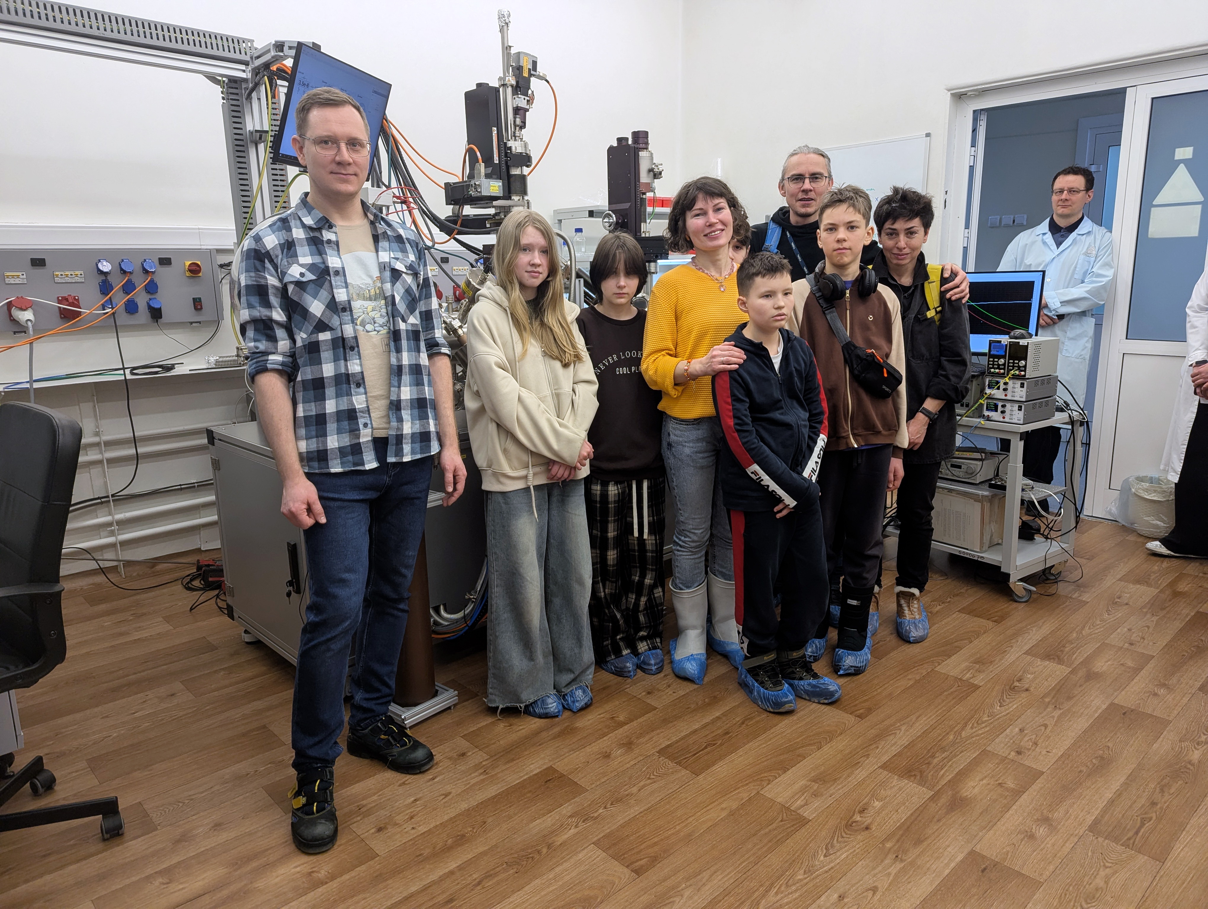 В лабораторно-технологическом корпусе маршрут для школьников 7-го класса 130 лицея г. Новосибирска пролегал через молодежную лабораторию физики и технологии гетероструктур на основе элементов IV группы.