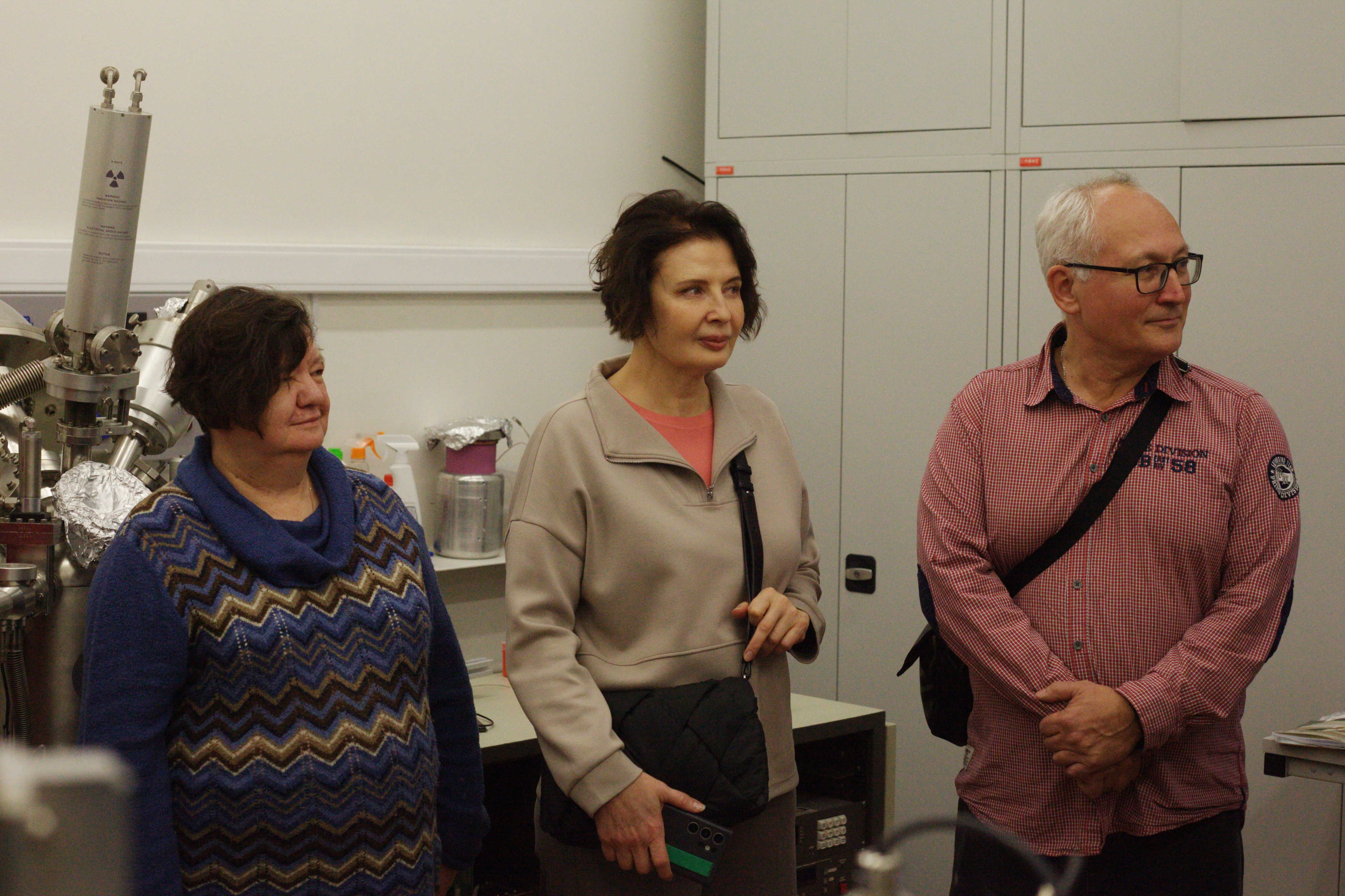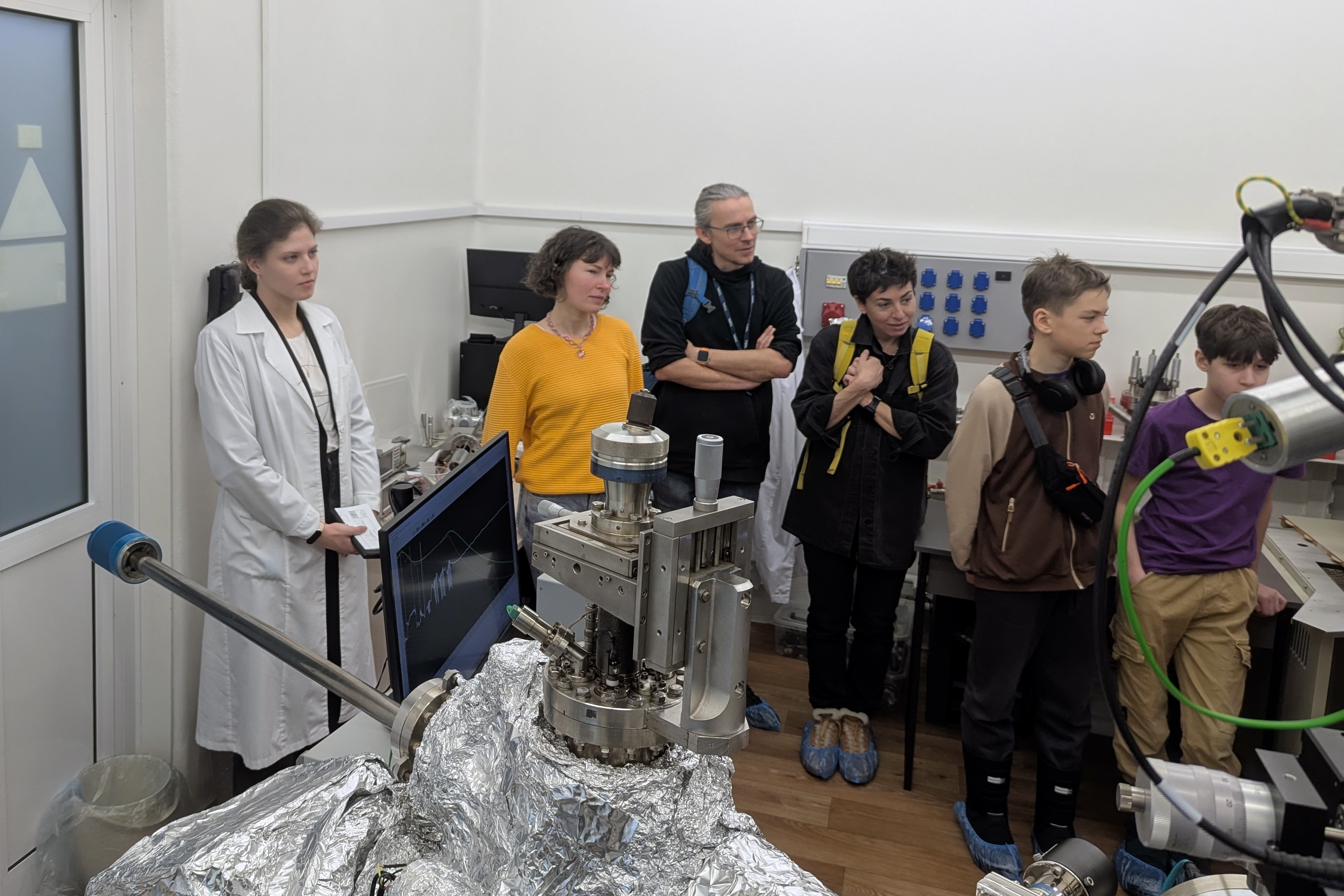 Посетители института увидели фотоэлектронный спектрометр с угловым разрешением (ФЭСУР), спектрометр комбинационного рассеяния света, совмещенный с атомно-силовым микроскопом, сверхвысоковакуумный отражательный электронный микроскоп (СВВ ОЭМ), атомно-силовой микроскоп, зондовую станцию с параметрическим анализатором полупроводниковых приборов.