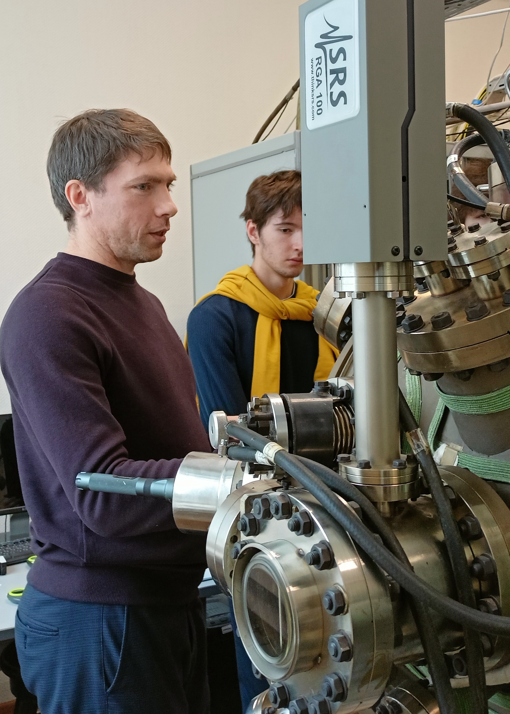 В завершение рассказа гости узнали, что сверхвысоковакуумный электронный отражательный микроскоп — ламповый, в прямом смысле слова. «Сделан микроскоп еще в 1960-х годах, естественно никаких гарантийных обязательств уже нет, и это развязывает нам руки: мы можем его менять как угодно, модернизировать под свои задачи. Минус только один — такие лампы больше не выпускают. Недавно партию нашли в частной коллекции в Санкт-Петербурге.